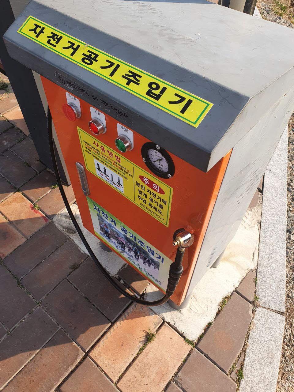 하지만, 전력 문제인지 공기가 나오다가 말았고, 덕분에 앞바퀴 하고 뒷바퀴 공기압이 달라서 계속 꿀렁꿀렁대면서 왔다.